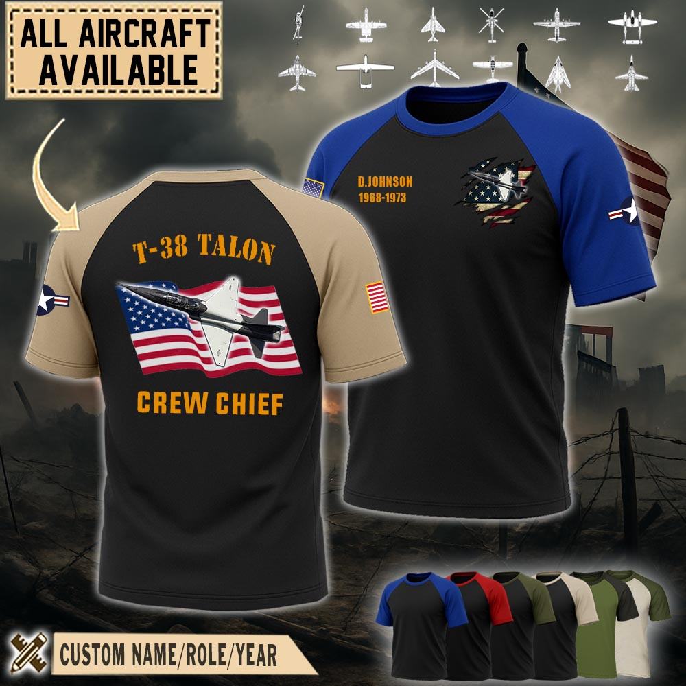 Show your pride with our T-38 Talon T38_Raglan Tshirt honoring the service, sacrifice, and contributions. Wear the emblem with pride, symbolizing the unwavering dedication and integrity of the men and women who serve in this distinguished force.