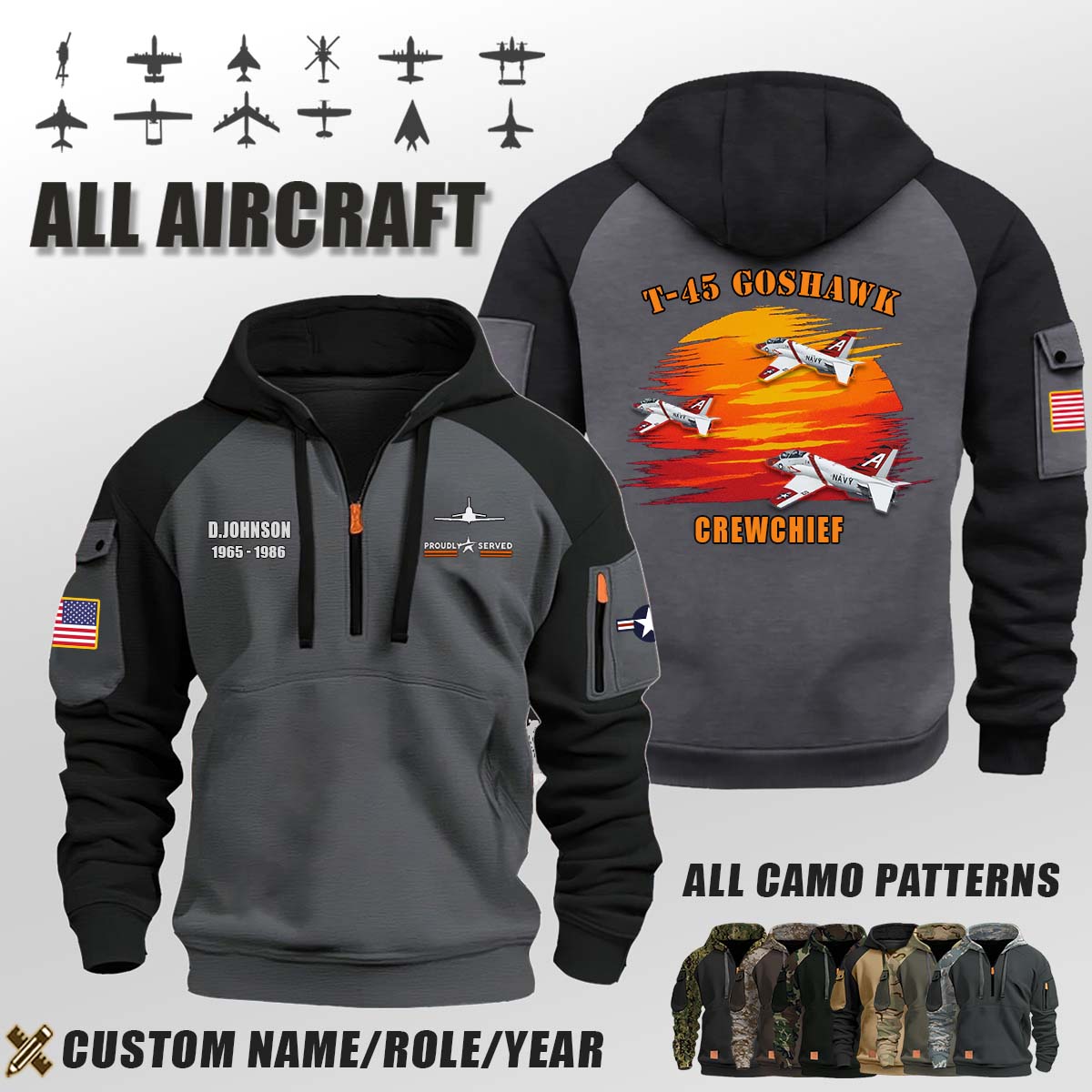 This T-45 Goshawk T45_Sunset Camo Halfzip Hoodie honors every hero who has ever touched the skies in service to our nation. Whether you’re an active-duty pilot leading today’s missions, a proud veteran of past air campaigns, or a family member supporting those who fly—this hoodie carries your aviation spirit with pride and strength.
