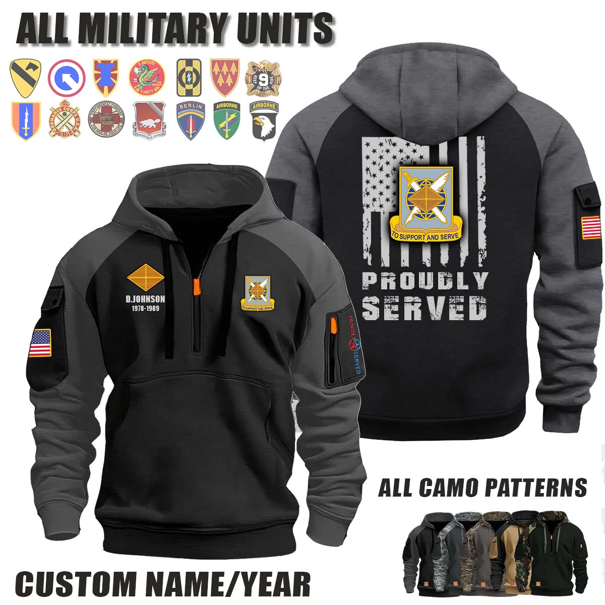 This US Army Finance Corps_Camo Halfzip Hoodie lets you customize your Branch, Unit, Role, Rank, and Years Served — so your service, sacrifice, and pride live on.