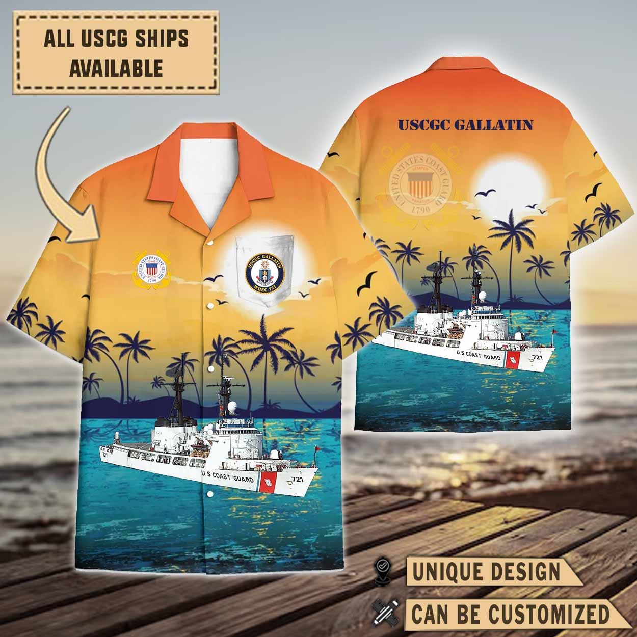 Show your pride with our USCGC Gallatin (WHEC-721)_Sunset Hawaiian Shirt honoring the service, sacrifice, and contributions. Wear the emblem with pride, symbolizing the unwavering dedication and integrity of the men and women who serve in this distinguished force.