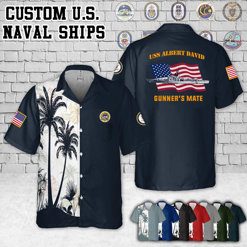 Celebrating your military service with our USS Albert David (FF-1050)_Flag Pocket Hawaiian Shirt