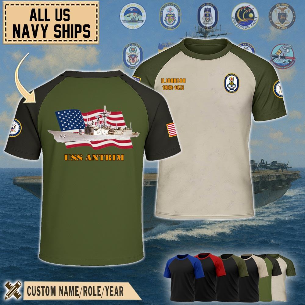 Show your pride with our USS Antrim (FFG-20)_Raglan Tshirt honoring the service, sacrifice, and contributions. Wear the emblem with pride, symbolizing the unwavering dedication and integrity of the men and women who serve in this distinguished force.