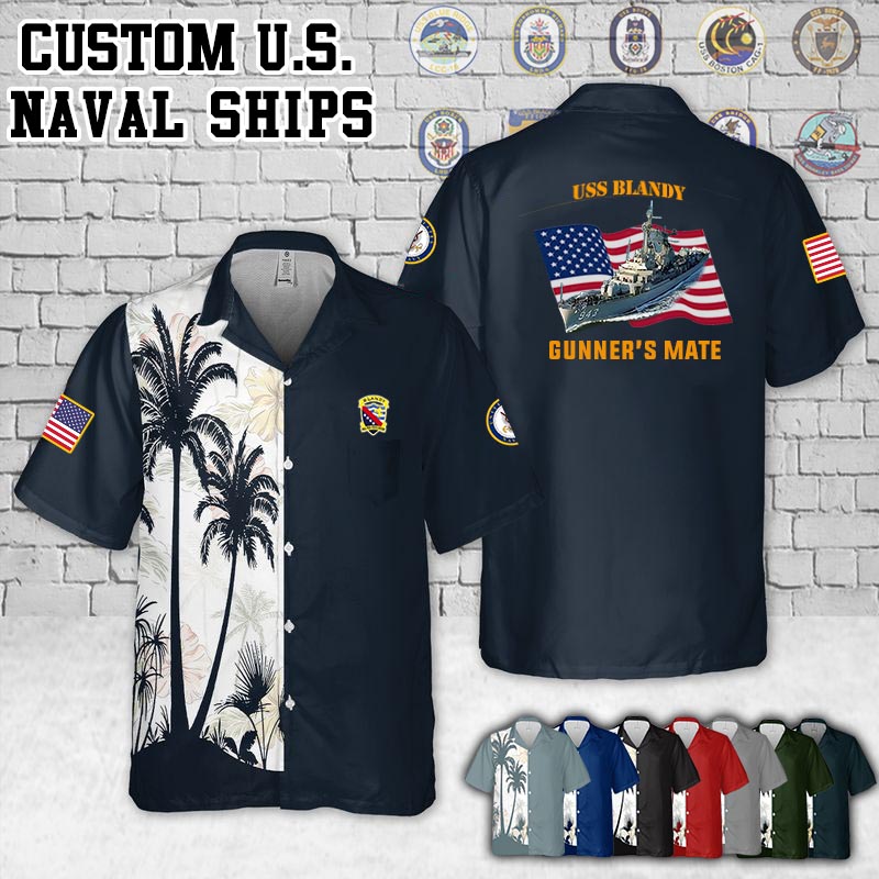 Celebrating your military service with our USS Blandy (DD-943)_Flag Pocket Hawaiian Shirt