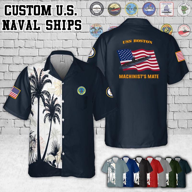 Celebrating your military service with our USS Boston (SSN-703)_Flag Pocket Hawaiian Shirt
