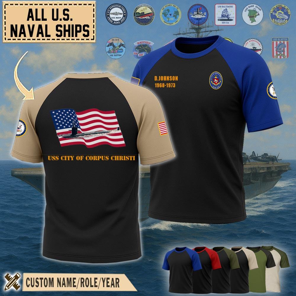 Show your pride with our USS City of Corpus Christi (SSN-705)_Raglan Tshirt honoring the service, sacrifice, and contributions. Wear the emblem with pride, symbolizing the unwavering dedication and integrity of the men and women who serve in this distinguished force.