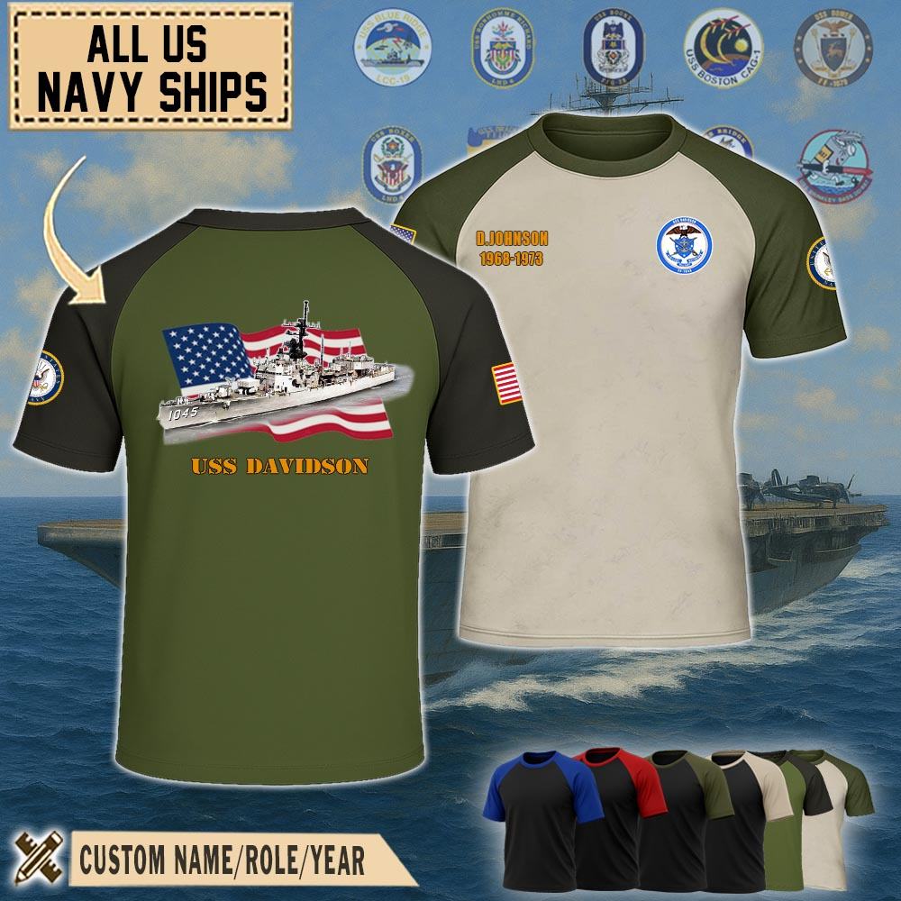 Show your pride with our USS Davidson (FF-1045)_Raglan Tshirt honoring the service, sacrifice, and contributions. Wear the emblem with pride, symbolizing the unwavering dedication and integrity of the men and women who serve in this distinguished force.