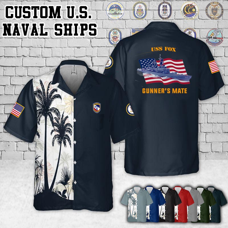Celebrating your military service with our USS Fox (CG-33)_Flag Pocket Hawaiian Shirt