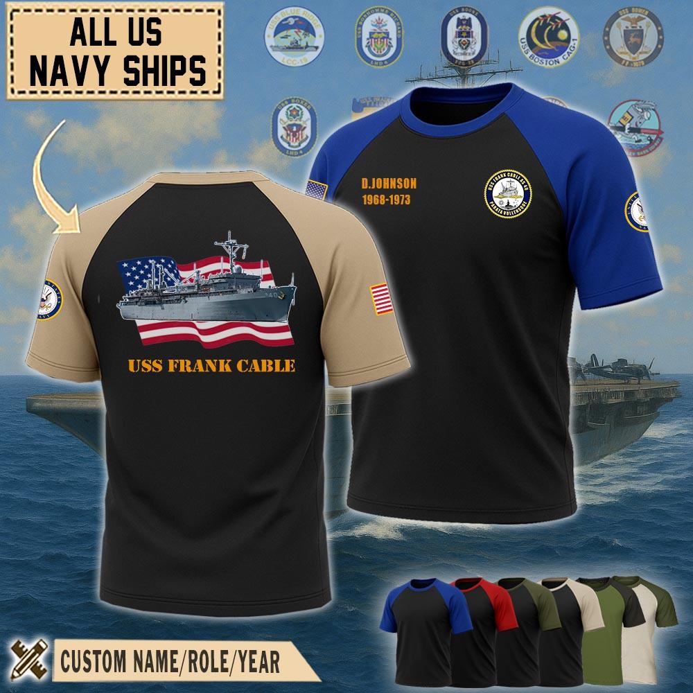 Show your pride with our USS Frank Cable (AS-40)_Raglan Tshirt honoring the service, sacrifice, and contributions. Wear the emblem with pride, symbolizing the unwavering dedication and integrity of the men and women who serve in this distinguished force.