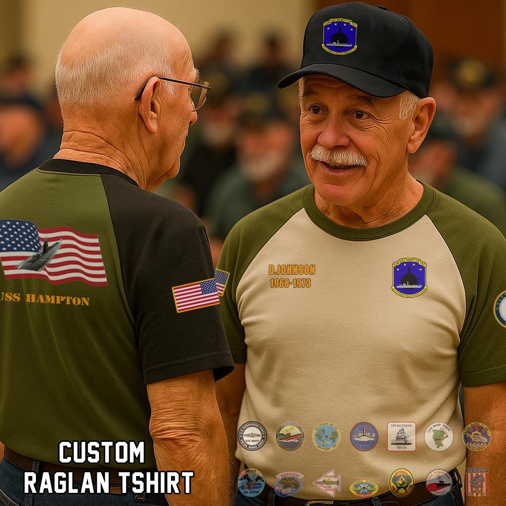 Show your pride with our USS Hampton (SSN-767)_Raglan Tshirt honoring the service, sacrifice, and contributions. Wear the emblem with pride, symbolizing the unwavering dedication and integrity of the men and women who serve in this distinguished force.