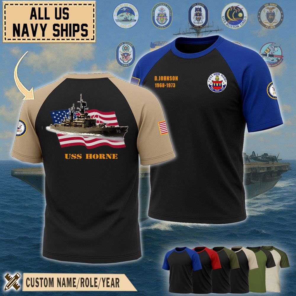 Show your pride with our USS Horne (DLG-30)_Raglan Tshirt honoring the service, sacrifice, and contributions. Wear the emblem with pride, symbolizing the unwavering dedication and integrity of the men and women who serve in this distinguished force.