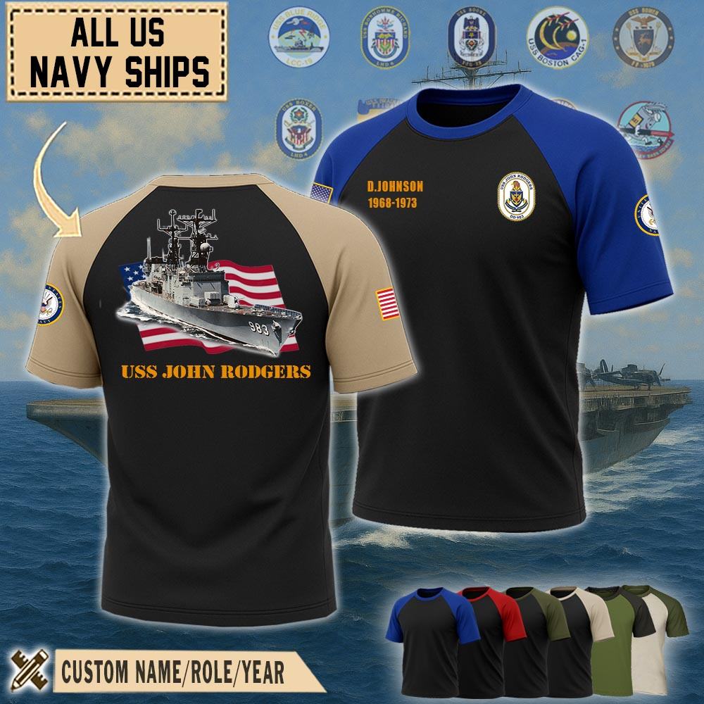 Show your pride with our USS John Rodgers (DD-983)_Raglan Tshirt honoring the service, sacrifice, and contributions. Wear the emblem with pride, symbolizing the unwavering dedication and integrity of the men and women who serve in this distinguished force.