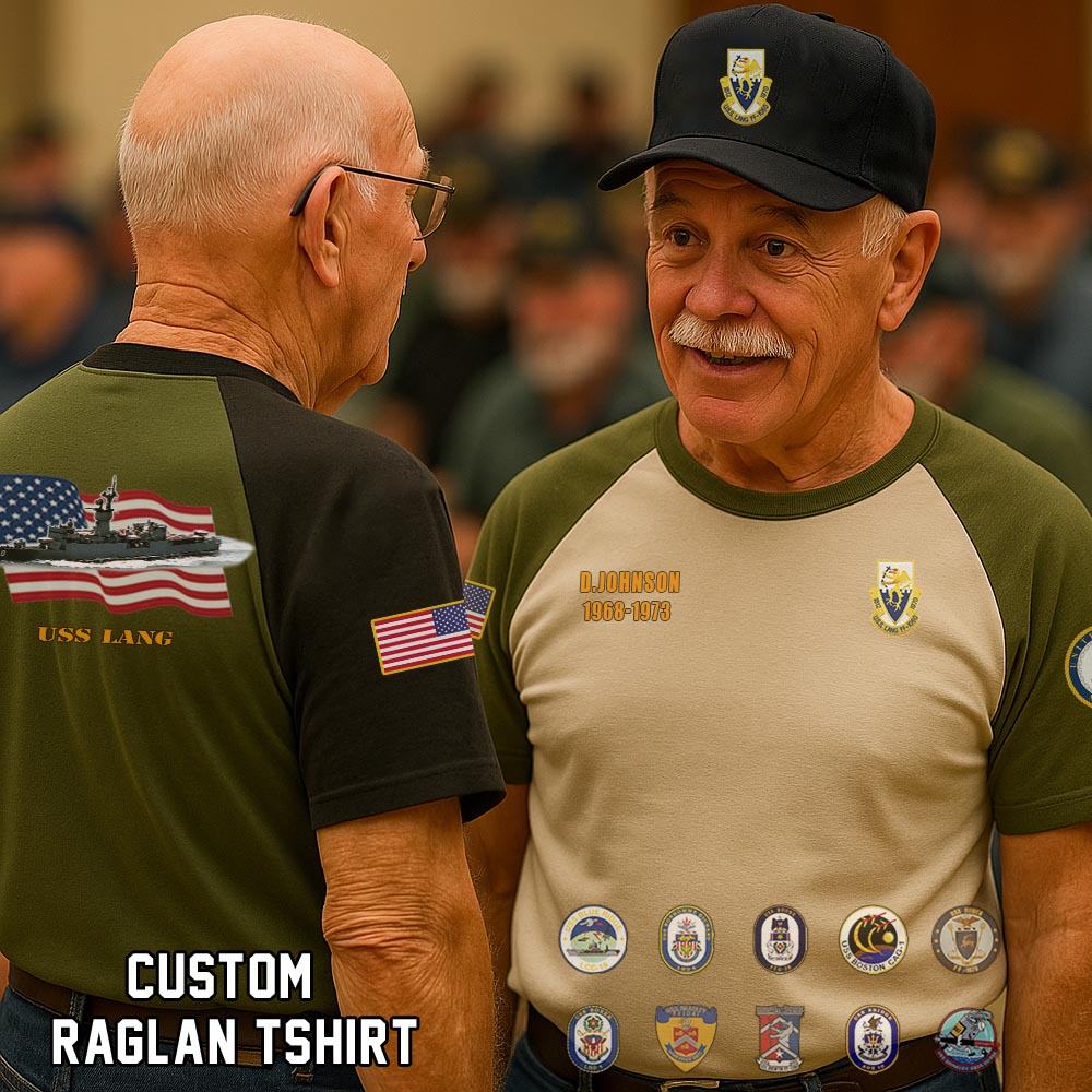 Show your pride with our USS LANG (FF-1060)_Raglan Tshirt honoring the service, sacrifice, and contributions. Wear the emblem with pride, symbolizing the unwavering dedication and integrity of the men and women who serve in this distinguished force.