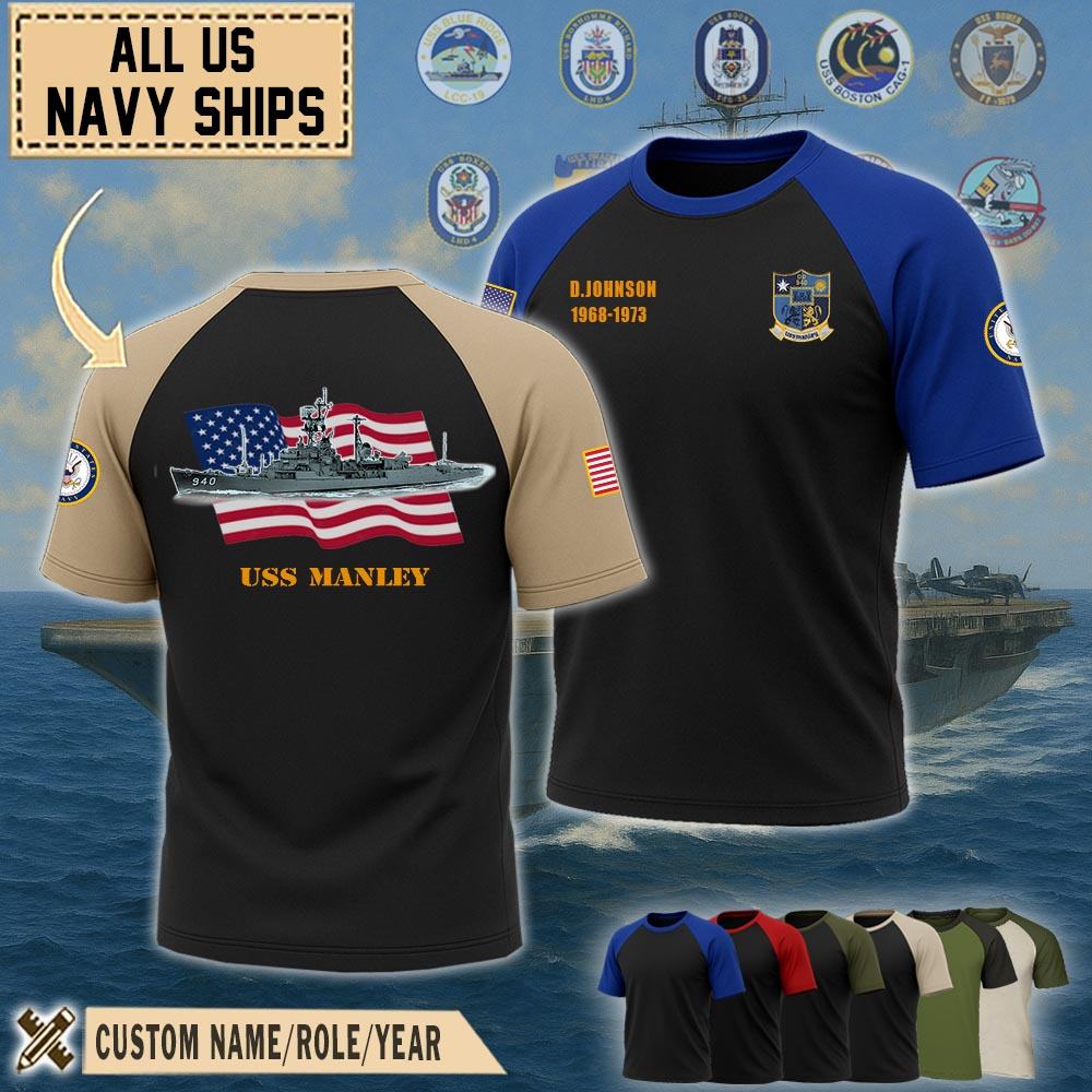 Show your pride with our USS Manley (DD-940)_Raglan Tshirt honoring the service, sacrifice, and contributions. Wear the emblem with pride, symbolizing the unwavering dedication and integrity of the men and women who serve in this distinguished force.