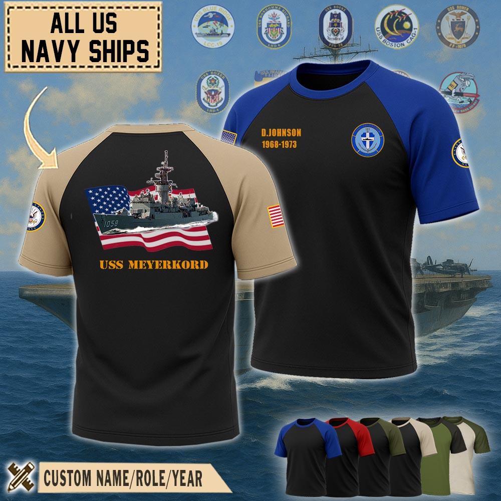 Show your pride with our USS Meyerkord (FF-1058)_Raglan Tshirt honoring the service, sacrifice, and contributions. Wear the emblem with pride, symbolizing the unwavering dedication and integrity of the men and women who serve in this distinguished force.