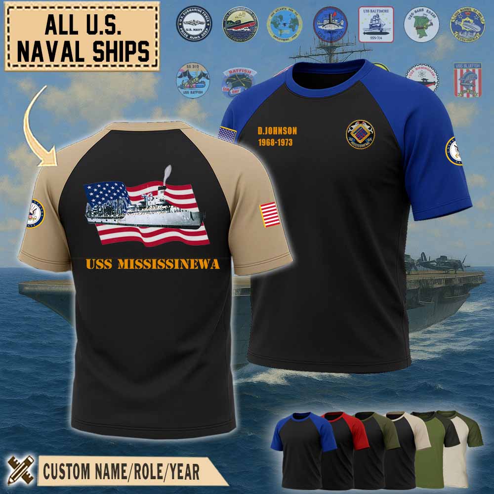 Show your pride with our USS Mississinewa (AO-144)_Raglan Tshirt honoring the service, sacrifice, and contributions. Wear the emblem with pride, symbolizing the unwavering dedication and integrity of the men and women who serve in this distinguished force.