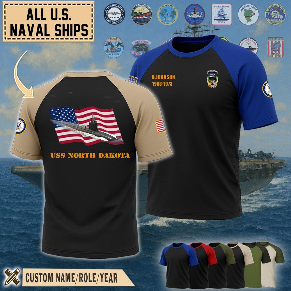 Show your pride with our USS North Dakota (SSN-784)_Raglan Tshirt honoring the service, sacrifice, and contributions. Wear the emblem with pride, symbolizing the unwavering dedication and integrity of the men and women who serve in this distinguished force.
