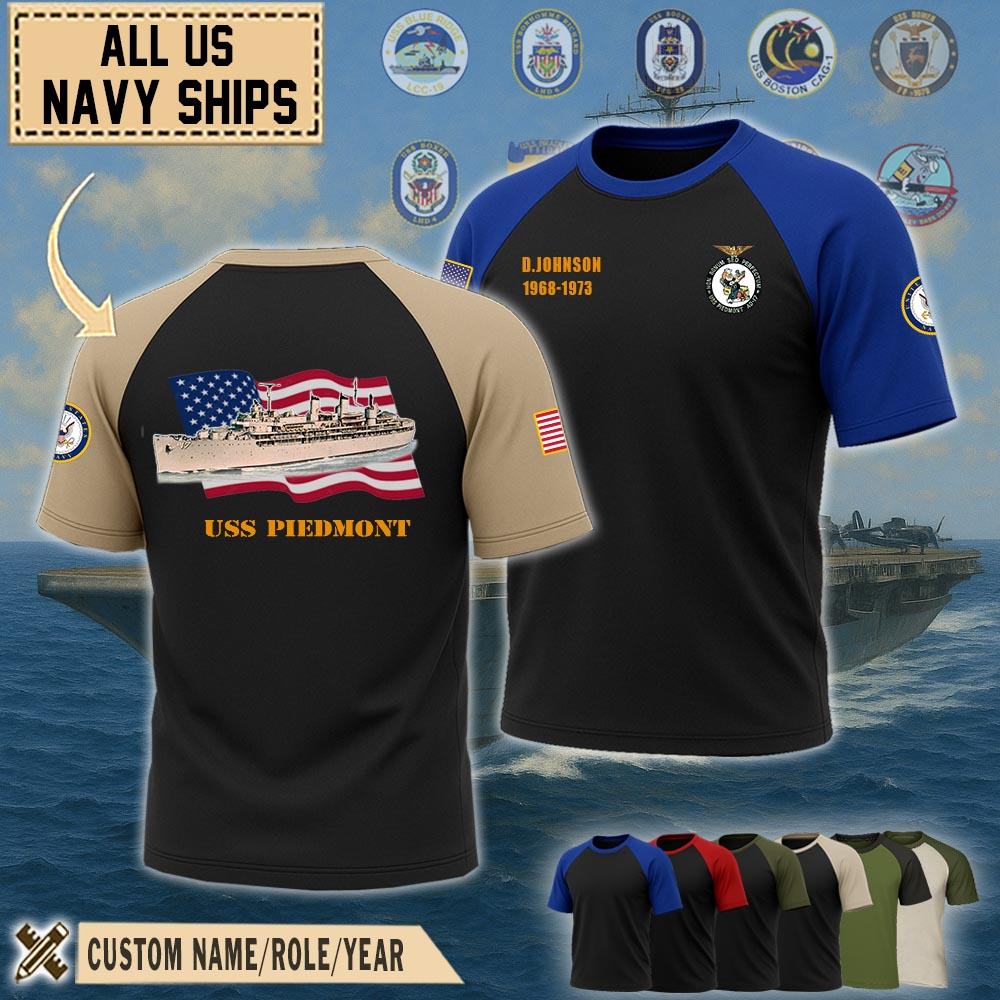 Show your pride with our USS Piedmont (AD–17)_Raglan Tshirt honoring the service, sacrifice, and contributions. Wear the emblem with pride, symbolizing the unwavering dedication and integrity of the men and women who serve in this distinguished force.