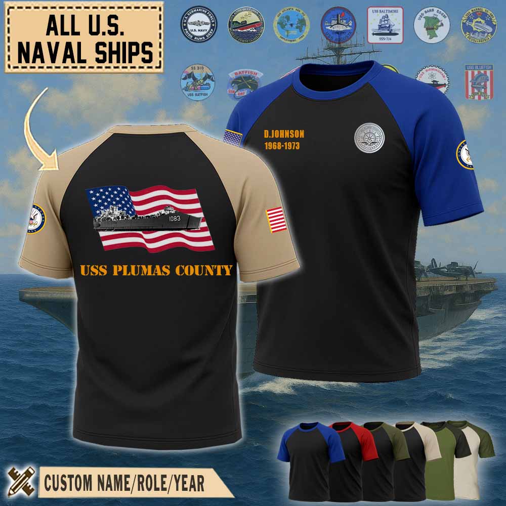 Show your pride with our USS Plumas County (LST-1083)_Raglan Tshirt honoring the service, sacrifice, and contributions. Wear the emblem with pride, symbolizing the unwavering dedication and integrity of the men and women who serve in this distinguished force.