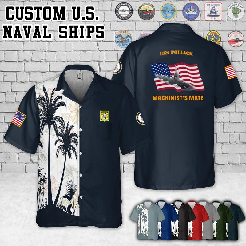 Celebrating your military service with our USS Pollack (SSN-603)_Flag Pocket Hawaiian Shirt