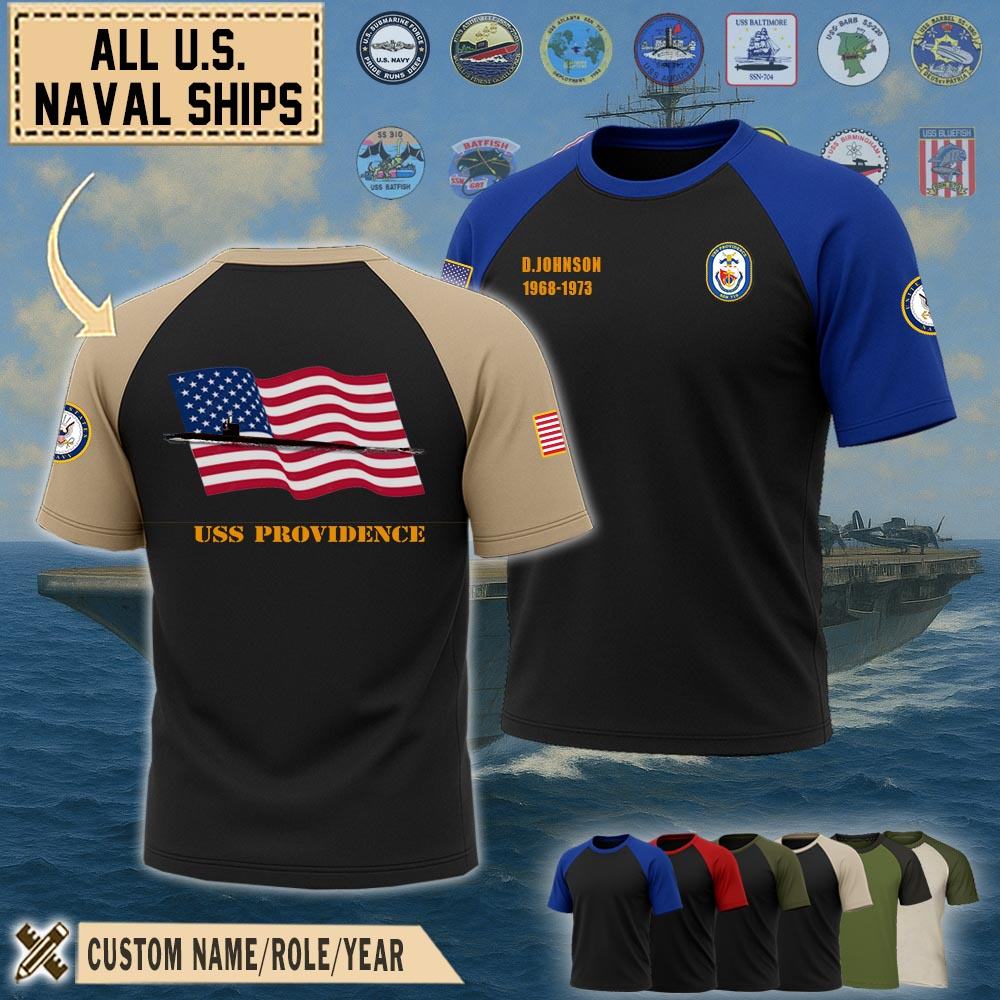 Show your pride with our USS Providence (SSN-719)_Raglan Tshirt honoring the service, sacrifice, and contributions. Wear the emblem with pride, symbolizing the unwavering dedication and integrity of the men and women who serve in this distinguished force.