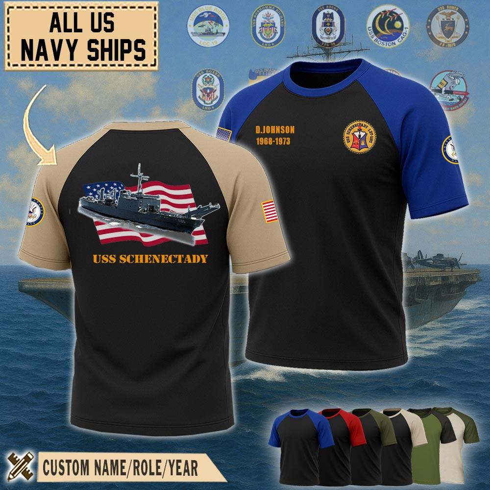 Show your pride with our USS Schenectady (LST-1185)_Raglan Tshirt honoring the service, sacrifice, and contributions. Wear the emblem with pride, symbolizing the unwavering dedication and integrity of the men and women who serve in this distinguished force.