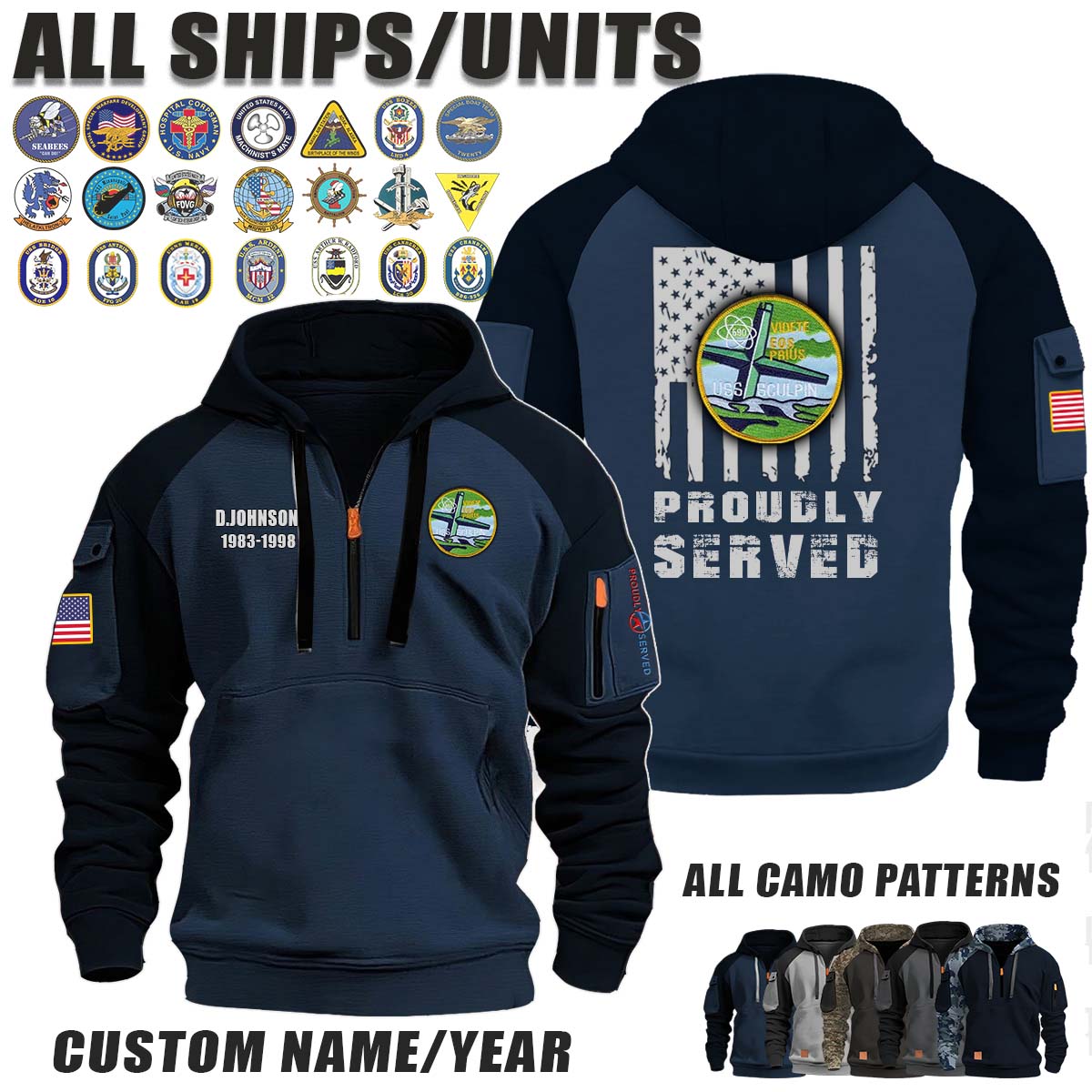 This USS Sculpin (SSN-590)_Camo Halfzip Hoodie lets you customize your Branch, Unit, Role, Rank, and Years Served — so your service, sacrifice, and pride live on.