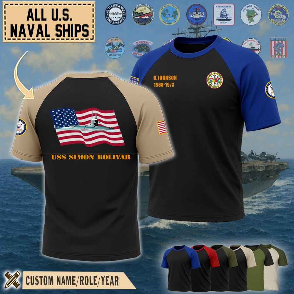Show your pride with our USS Simon Bolivar (SSBN-641)_Raglan Tshirt honoring the service, sacrifice, and contributions. Wear the emblem with pride, symbolizing the unwavering dedication and integrity of the men and women who serve in this distinguished force.