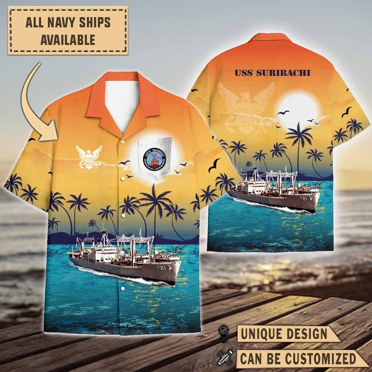 Celebrating your military service with our USS Suribachi (AE-21)_Sunset Hawaiian Shirt