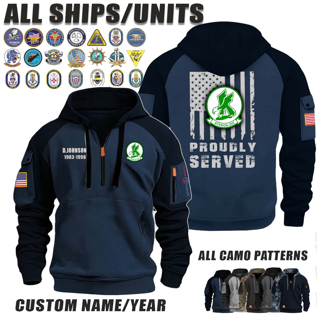 This VA-205 Green Falcons_Camo Halfzip Hoodie lets you customize your Branch, Unit, Role, Rank, and Years Served — so your service, sacrifice, and pride live on.