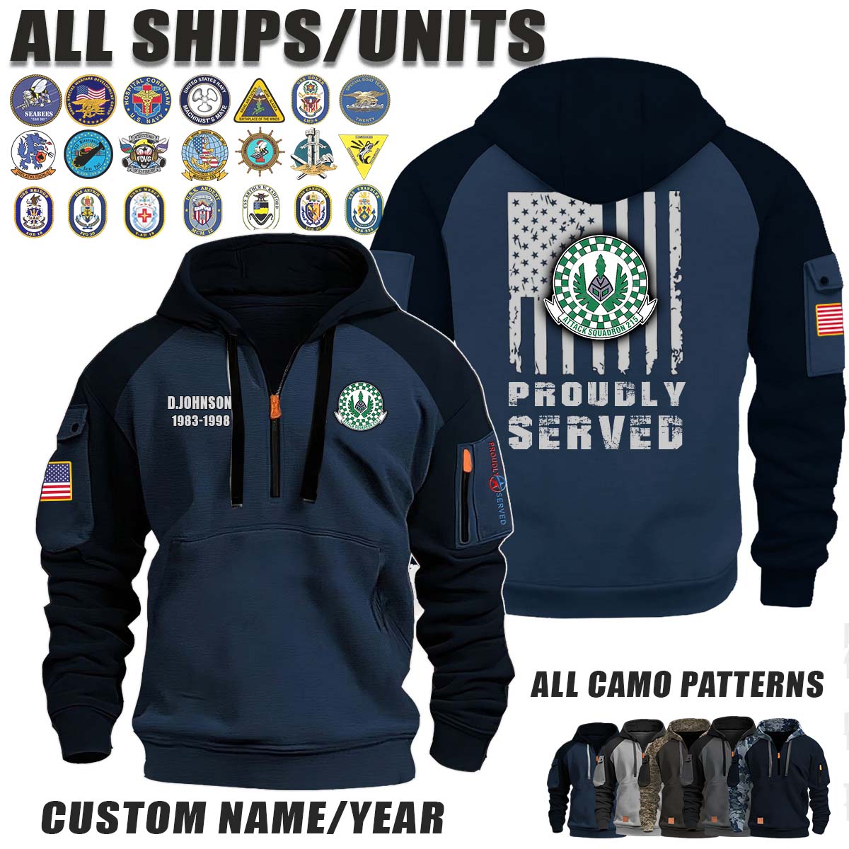 This VA-215 barn owls_Camo Halfzip Hoodie lets you customize your Branch, Unit, Role, Rank, and Years Served — so your service, sacrifice, and pride live on.