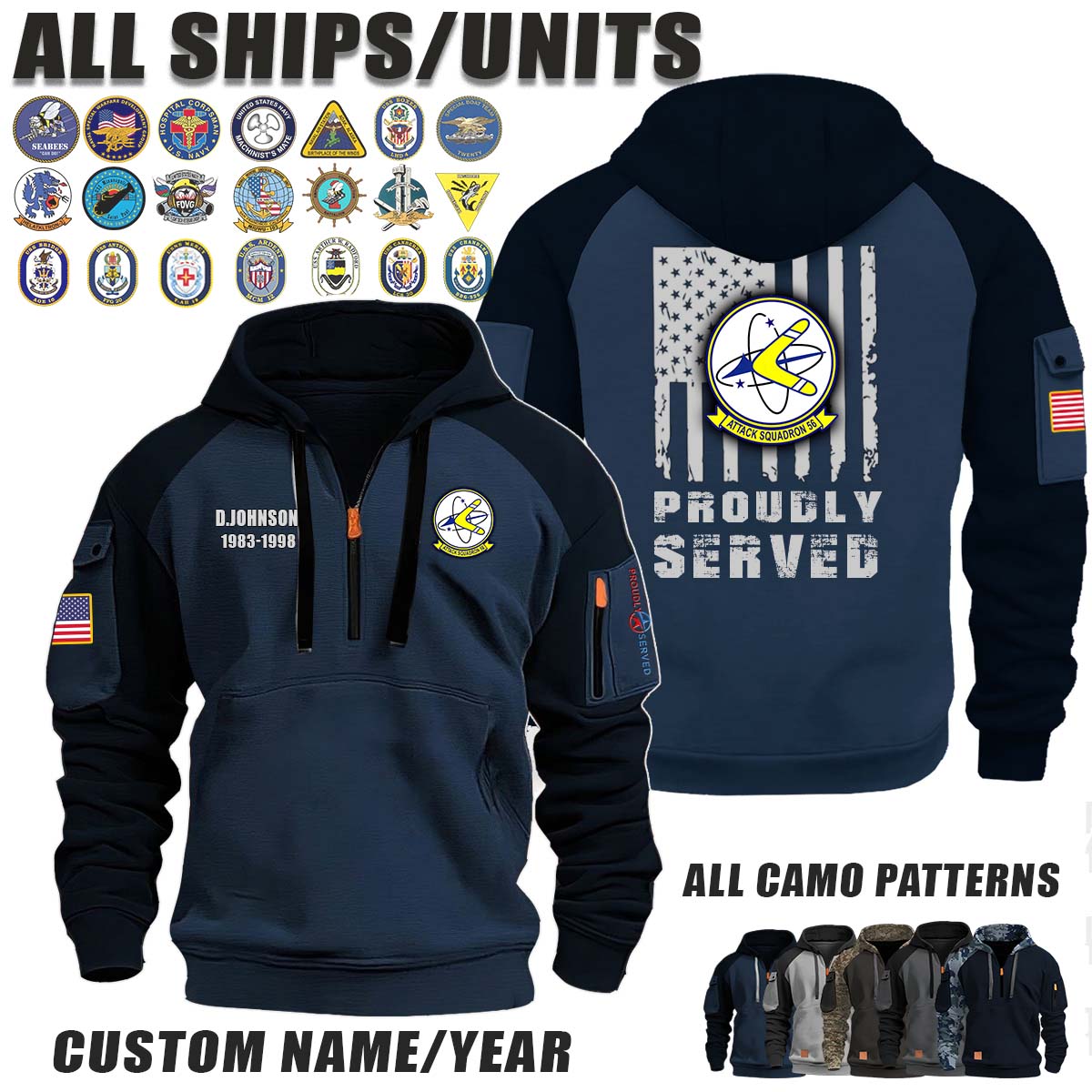 This VA-56 Champions_Camo Halfzip Hoodie lets you customize your Branch, Unit, Role, Rank, and Years Served — so your service, sacrifice, and pride live on.