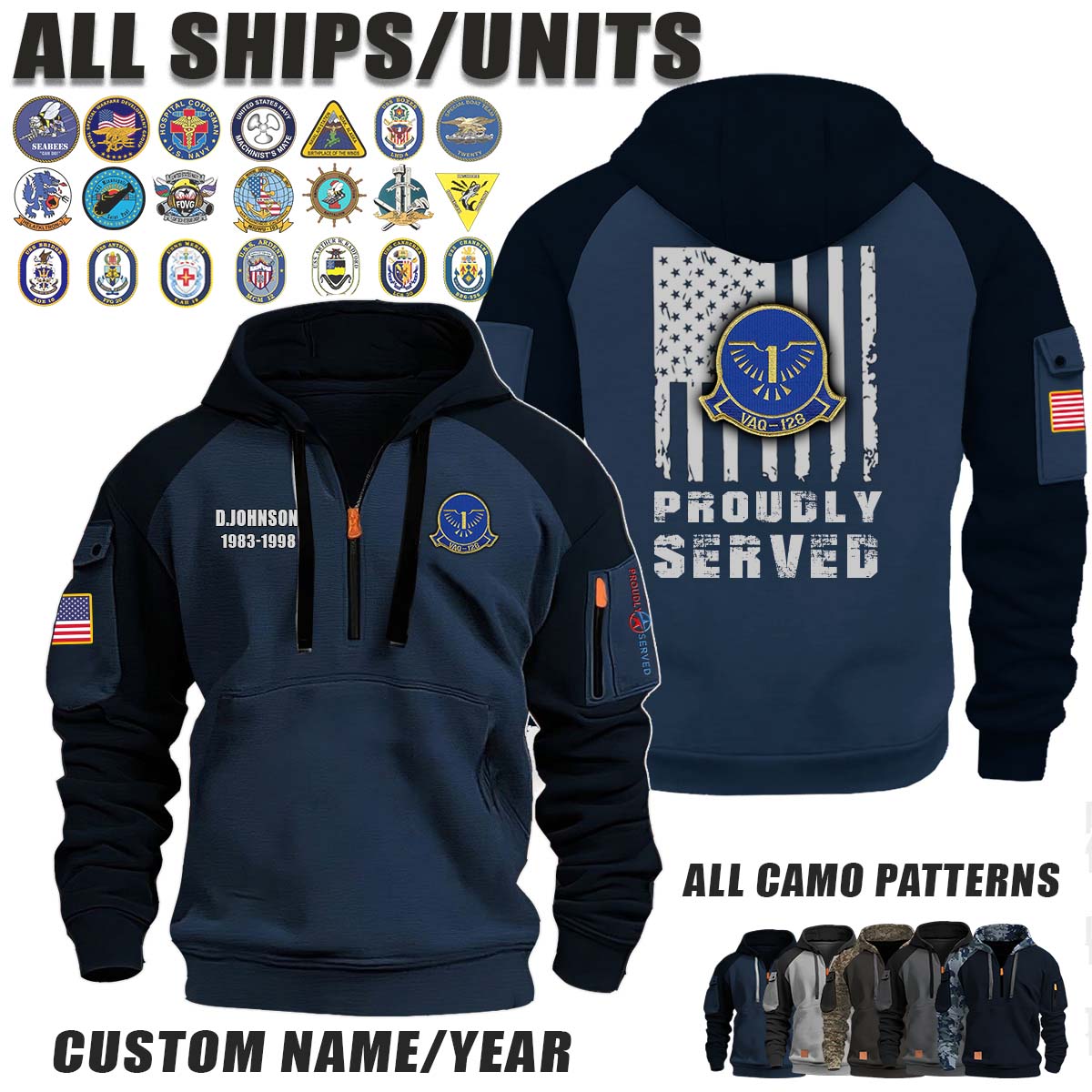This VAQ-128 Fighting Phoenix_Camo Halfzip Hoodie lets you customize your Branch, Unit, Role, Rank, and Years Served — so your service, sacrifice, and pride live on.