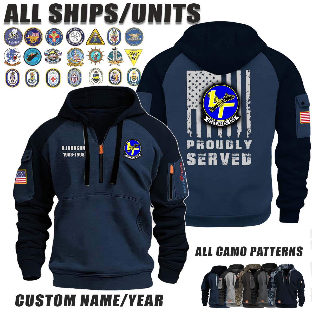 This VP-62 Broadarrows_Camo Halfzip Hoodie lets you customize your Branch, Unit, Role, Rank, and Years Served — so your service, sacrifice, and pride live on.