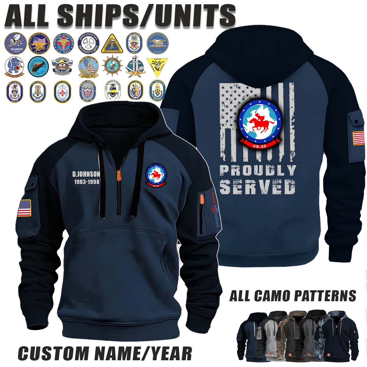 This VR-55 Minutemen_Camo Halfzip Hoodie lets you customize your Branch, Unit, Role, Rank, and Years Served — so your service, sacrifice, and pride live on.